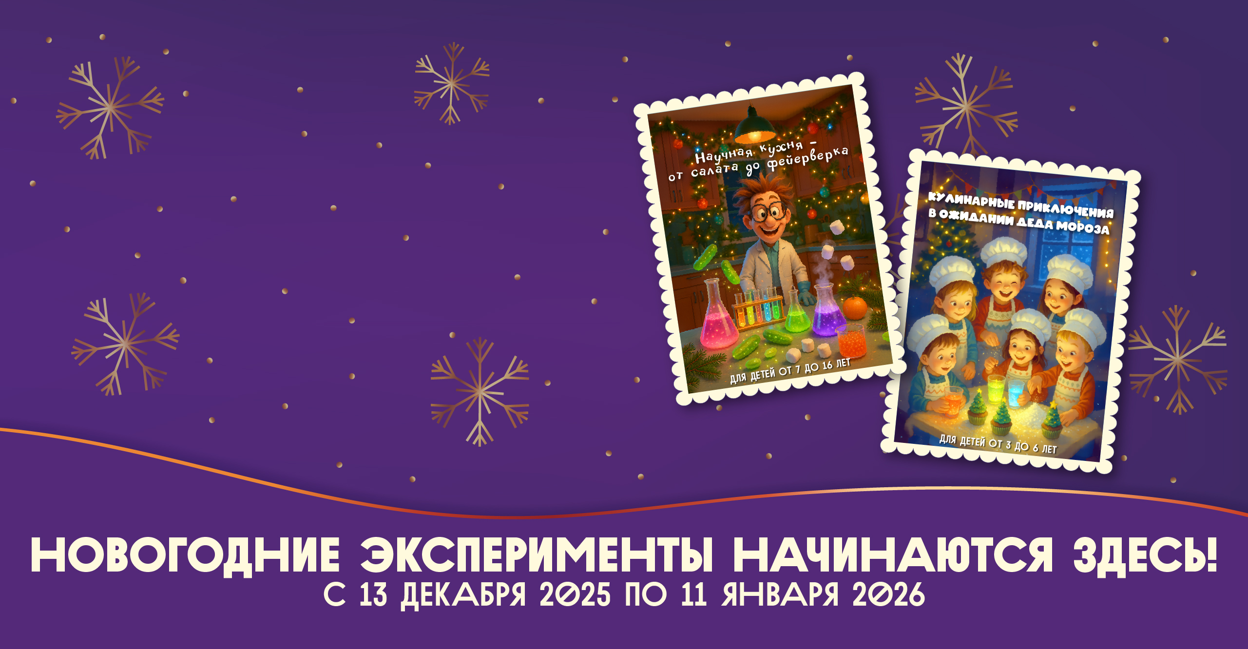 Новогодняя научная кухня для школьников и кулинарное приключение для малышей. Приходи с друзьями и заводи новых!